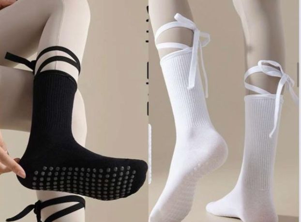 Calceta antiderrapante Parte superior jareta alta con liston elastico para amarrar a la pierna Material stretch de alta calidad Suela antiderrapante de goma